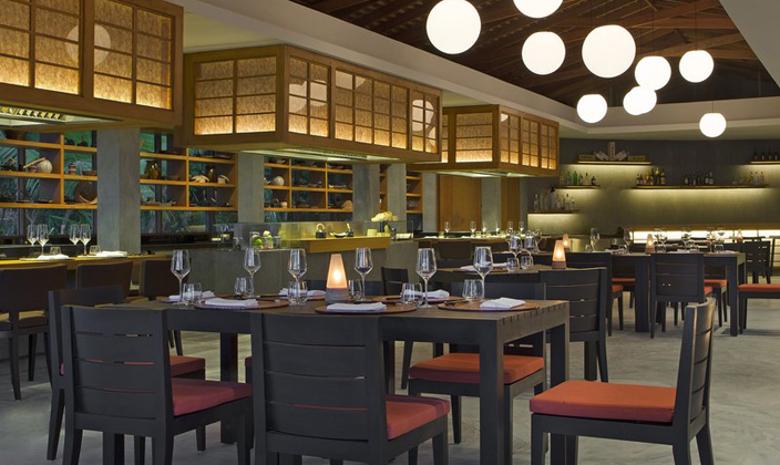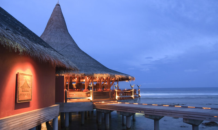 美食特色:日本、意大利美食。餐厅介绍:品尝新鲜生鱼片或融合意大利菜,包括炭火烘烤的披萨。幽静的庭院深处或露天雅座, 独特的餐点,伴您感受绝佳的海景餐点时光。在甲板上享受露天风味或在泰式茅草亭中进餐,足下净是沙滩的细沙。既可以安坐休憩,也可在独立吧台不远处玩上一局桌球