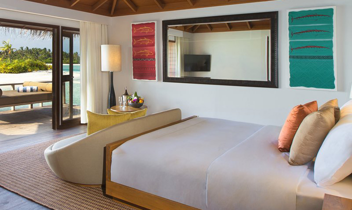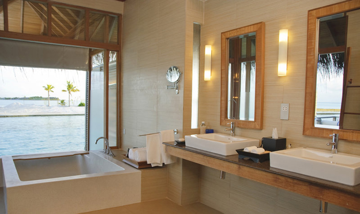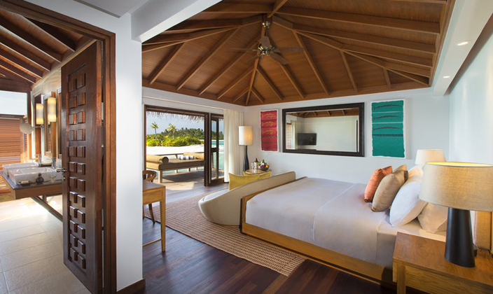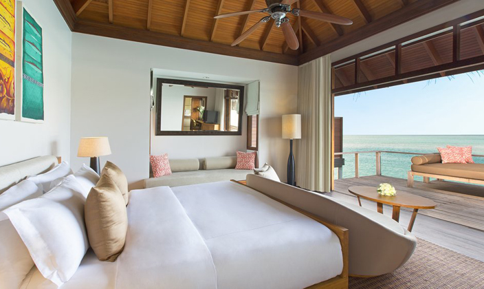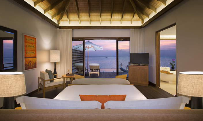 在薇莉岛安纳塔拉水疗度假村,富丽堂皇的92平方米豪华水上度假小屋尽显马尔代夫的魅力,为您奉上无与伦比的豪华住宿体验。享受超大空间,包括独立梳妆室和宽敞的室外私人平台;躺在私人小屋的日光躺椅上,饱览迷人的蔚蓝礁湖;浸浴在半户外双人水磨石浴池中,尽享舒适惬意。 每栋豪华水上度假小屋均直接连接宁静的大海,室内装潢采用最精美的材料,将温柔婉约的小岛设计美学融入其中。室内设施包括纯平电视、小吧台和高速互联网接入,确保您可以享受豪华的现代化住宿。