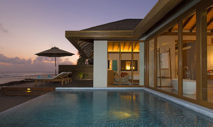 栖息在隐秘的悬崖边缘,直面碧波荡漾的印度洋,每栋海景泳池度假小屋都拥有125平方米宽敞的室内和室外空间,轻松漫步即可来到海滩和潟湖。硬木地板、海岛风情内饰以及各种招牌舒适,这些迷人静居充满亲密天然的风格,更有无敌海景相伴。 在铺着精美床单的豪华特大双人床上酣然入睡。 步入舒适的空调浴室,泡在宽大浴缸里尽情放松,耳边播放最爱的iPod曲目。 宝蓝色的海水和层层叠起的波浪,透过室内的落地玻璃窗即可欣赏这般一览无遗的美景。 在室外品味相同的绝美风景,感受温柔海风拂过脸庞。 来到露台,靠在躺椅上晒晒太阳,细细品味小吧台的美酒。 或者在唯您独享的宁静世界里,在私人跳水池里畅游一番。