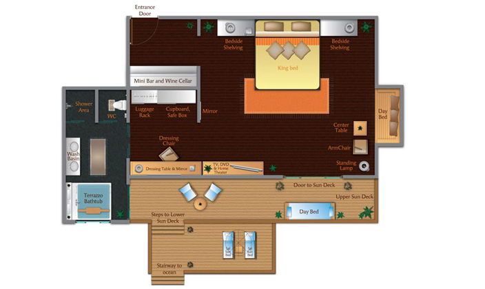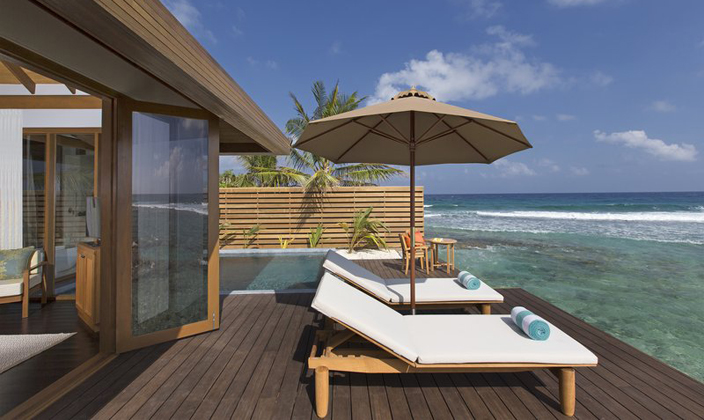 马尔代夫薇莉岛安纳塔拉的62平方米水上度假小屋坐落于原始热带天堂之中,配有硬木地板和椰叶屋顶和时尚的现代内饰。床上铺着当地纺织品,典雅的半露天浴室飘来热带鲜花和茉莉的阵阵清香。 私人小屋的独享日光露台为每位客人提供温馨的私密空间,让您放松休憩。露台配有日光躺椅和浓荫中的沙发床,并能直接步入礁湖。踏入室内,各种豪华住宿设施应有尽有,包括双人水磨石浴池、纯平卫星电视和高速互联网接入。