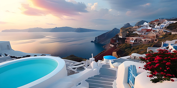 17:25 抵达后自由活动。您可自行前往该岛最西端的火山断崖伊亚,捕捉该岛屿经典的白色小教堂映衬蓝色爱琴海的唯美景致和浪漫的“夕阳日落爱琴海”;